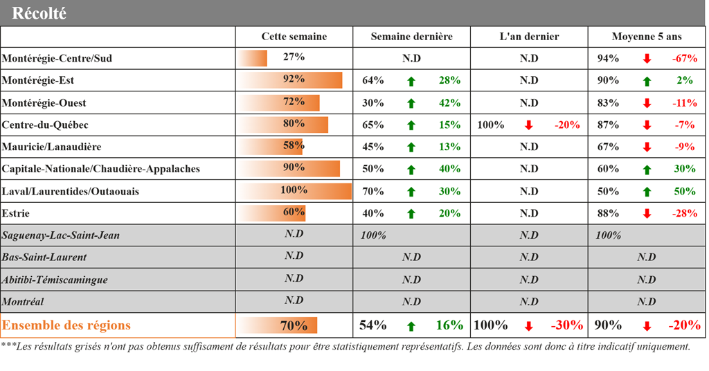«Le mauvais temps couplé avec le maïs qui reste autour de 29-30 % d’humidité ralentit vraiment la récolte. Je n’ai pas eu le temps de faire une tournée des champs mais le maïs semble toujours debout malgré la neige, même s’il a bien raccourci. En souhaitant qu’il n’y ait pas de période avec de trop grands vents.» s’inquiète Billy Beaudry, Ferme Beau-Porc en Montérégie-Est.