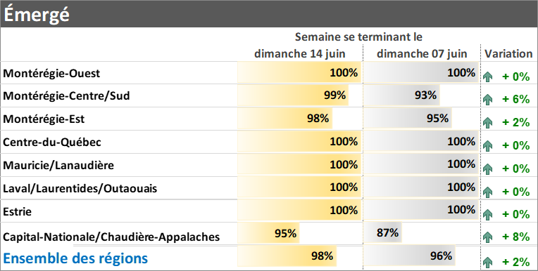 Bilan hebdomadaire: Semaine se terminant le 14 juin