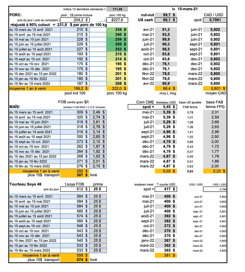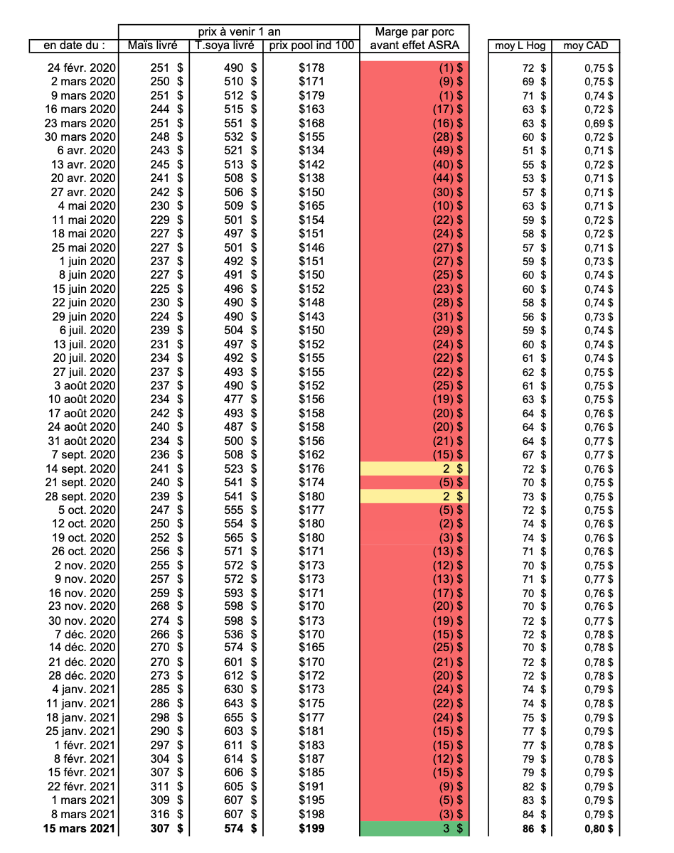 marge 15 mars à + 3 $ par porc