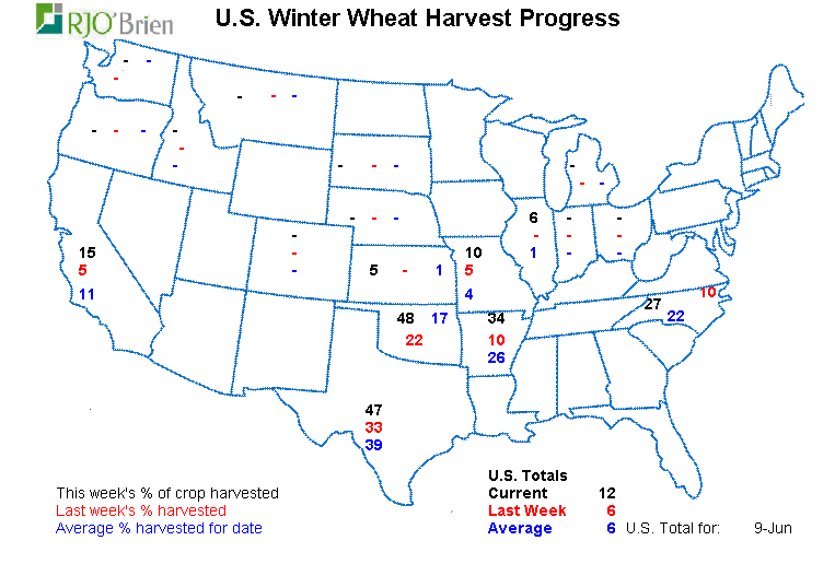- Blé hiver : 12% de récolté, la qualité baisse légèrement.