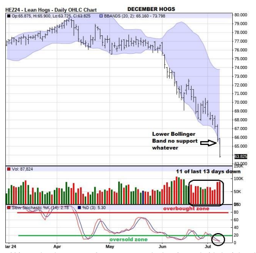 Il est surprenant que les contrats à terme se retrouvent à ce point affectés par une augmentation de production de 2% pour l’année…. Faut croire qu’il faut faire souffrir les producteurs pour les forcer à diminuer la production. Il est d’autant plus surprenant que la baisse du prix du porc sur les marchés et le prix offert aux producteurs ne se transmet pas aux consommateurs qui croient encore et toujours que l’inflation alimentaire existe dans leur panier d’épicerie. Le calcul de l’inflation en mai aux États-Unis rapportait que le prix du porc avait augmenté de 1.4%. On prévoit même que le prix global du porc en 2024 sera 1.1% plus élevé sur les tablettes des épiceries versus 2023. Alors que le prix au comptant reçu par le producteur sera en baisse de 15%. Produire du porc - non, le vendre – oui!
