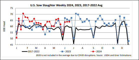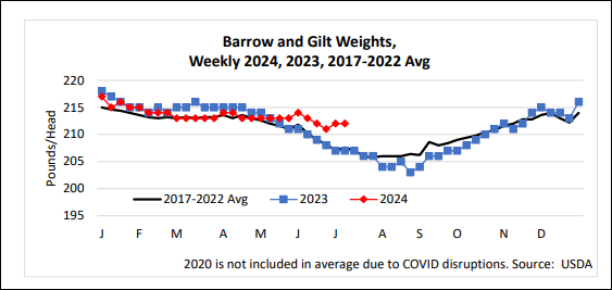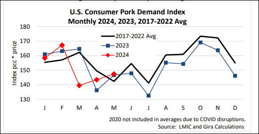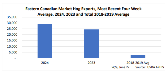Quant à la production future de porcs, le USDA a averti que celle-ci pourrait encore augmenter en 2025 en raison de la productivité accrue. On fait encore une fois plus avec moins. Pourtant, on diminue encore les truies cette année. Le poids des porcs est aussi tout simplement plus lourd que l’année dernière; ce qui crée un surplus de viande de porcs disponible. D’après le dernier apport de Hog & Pig, on devrait avoir presque 2% plus de porcs juillet et août et nous devrions avoir une croissance de moins de 1% pour l’automne. Par contre, la crainte du marché sera de constater une hausse du nombre d’animaux disponible durant les mois d’octobre / novembre et décembre avec une capacité d’abattage restreinte…. Comme en 1998… Ça ne serait pas joli. C’est pourquoi il faudra profiter de la hausse des prochaines semaines des contrats à terme pour peut-être remettre des stratégies de protection en place pour l’automne et le printemps 2025.