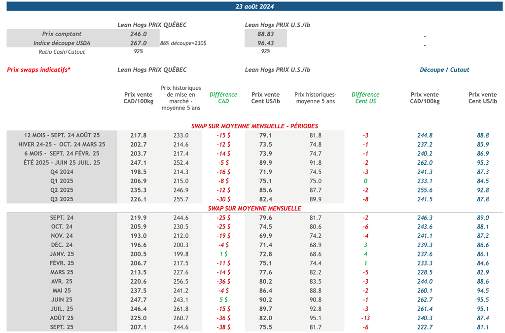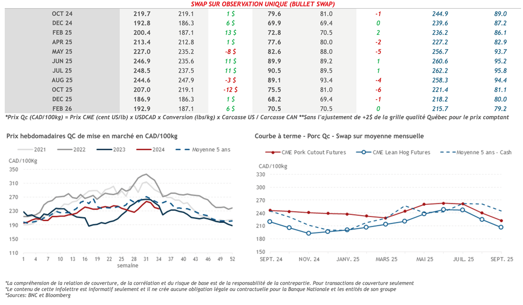 Prix swaps indicatifs - Porc - Banque Nationale