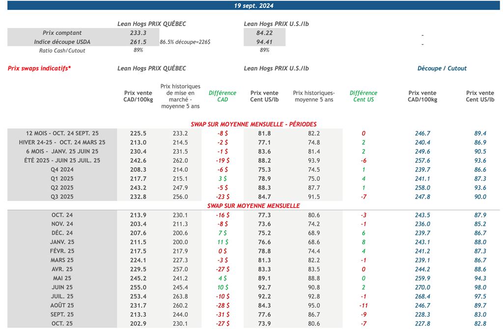 • 26 septembre: USDA - Ventes nettes d’exportations pour les grains et le porc