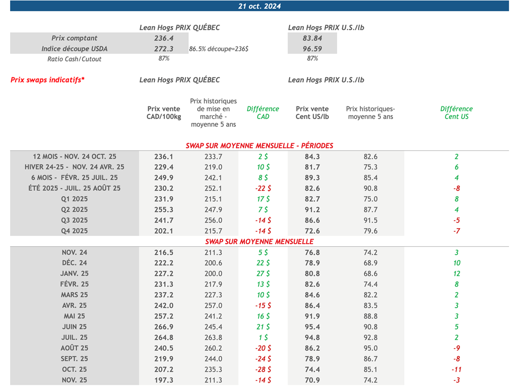 • 24 octobre: USDA - Ventes nettes d’exportations pour les grains et le porc