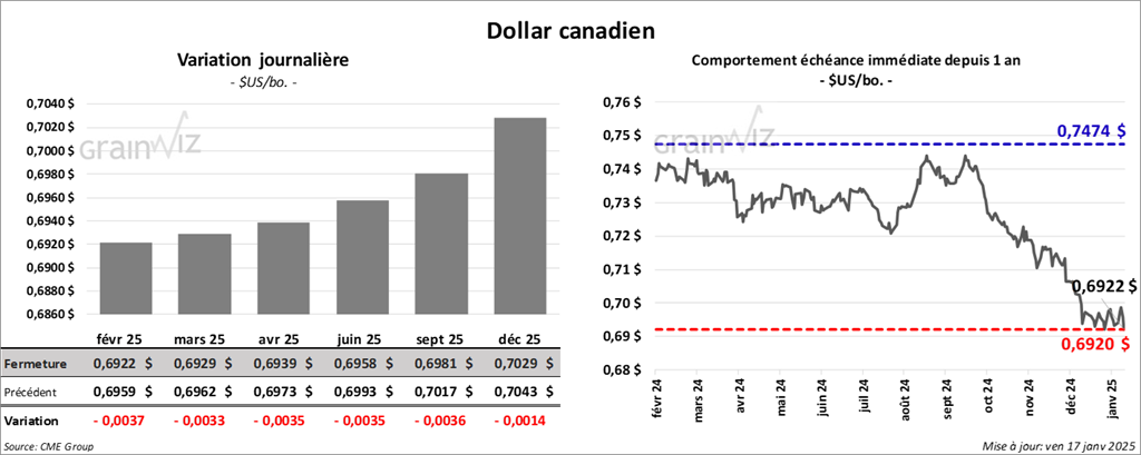 Les manœuvres du gouvernement chinois à l’approche de l’investiture de l’administration Trump sont également un facteur négatif : les ententes Brésil/Chine font croire que la demande pour le soya US et ses dérivés pourrait chuter.