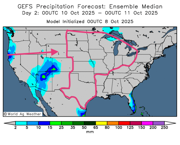 - World Weather : averses récentes sud du Midwest ; récolte ralentie ; reprise attendue «prochains jours» (fenêtre plus sèche).