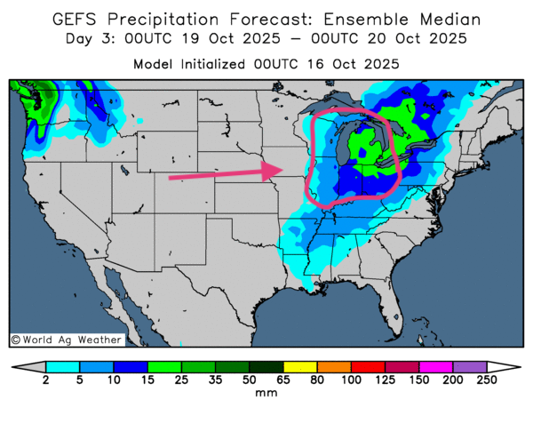 - Pour le week-end et la semaine prochaine, World Weather anticipe de meilleures chances de précipitations pour l'ensemble du Midwest et du reste des Plaines américaines. Ces averses risquent de ralentir les travaux aux champs.