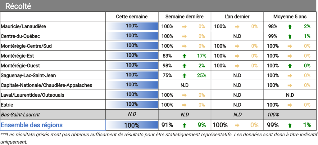 À pareille date l’an dernier, elle était terminée. On affiche aussi un retard de 28% par rapport à la moyenne cinq ans, soit un bon un-deux semaines.