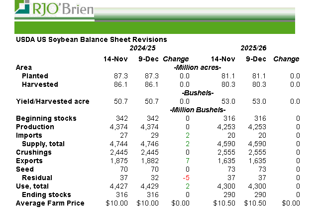 - Rapport USDA (décembre) : sans trop de surprise, presque copié-collé sur le mois dernier.
