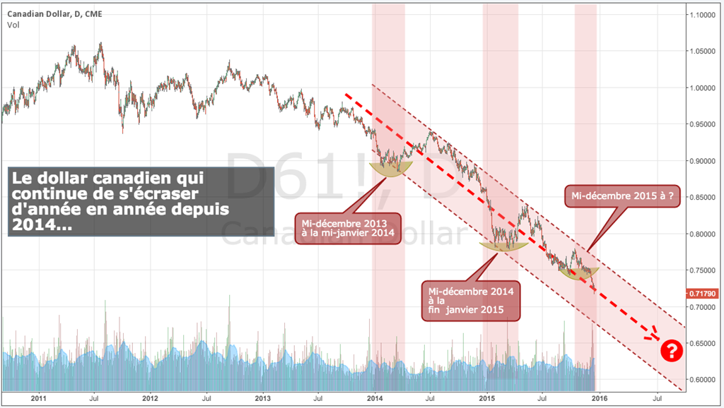 Mais, comme l’illustre bien le graphique ci-haut, c’est la 3e fois en trois ans que le dollar canadien flanche au bon moment pour sauver la mise suivant les récoltes :