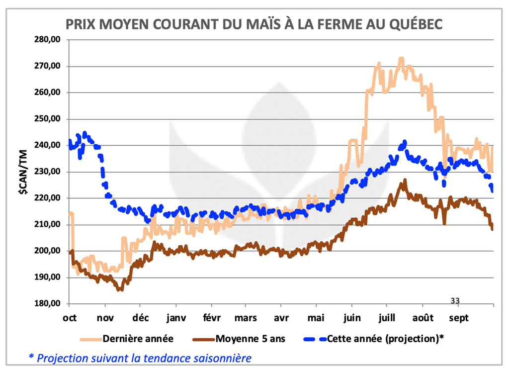 Bien entendu, avec la mauvaise récolte de cette année, il serait étonnant que le prix du maïs au Québec ne soit pas plus intéressant dans les prochains mois.
