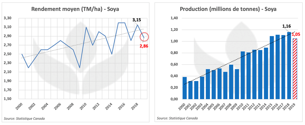 Pour le soya, les chiffres de Statistique Canada apparaissent plus cohérents, ce qui tient certainement de la récolte qui était déjà pratiquement terminée lorsque les données ont été recueillies.