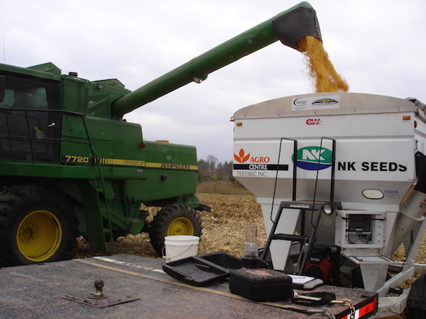Les rendements en maïs sont très variables, mais en général les producteurs sont agréablement surpris de la qualité, avec des rendements moyens entre 8.2 – 10.5 TM/ha. Ce n’est pas la catastrophe telle qu’anticipée. La région de Lacolle a été la plus touchée, avec trop de précipitations au printemps. Cette région a du 6-9 TM/ha et les producteurs cherchent à acheter du maïs pesant pour mixer avec leur maïs léger pour vendre du #3 et ne pas être trop escompté.