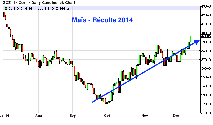 Comment ne pas oublier non plus 2014, alors qu’après un creux à 3,1825 $US/boisseau au début octobre, le prix du maïs à Chicago n’a plus jamais regardé en arrière pour finir l’année à plus de 3,90 $US/boisseau.