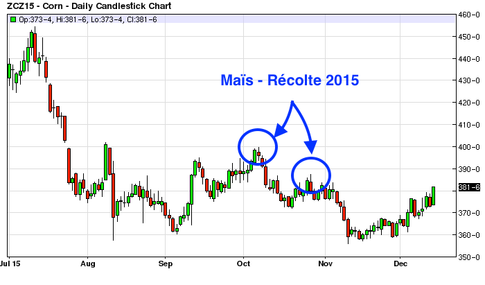 C’est sans compter les prix à la bourse qui ont surpris à quelques reprises dans les dernières années, bondissant alors que personne ne croyait que ce serait possible en pleine récolte. Ce fût le cas l’an dernier avec par exemple le prix du maïs à Chicago qui a frisé 4,00 $US/boisseau au début octobre suivi d’un rebond ensuite à la fin du mois à pratiquement 3,90 $US/boisseau.