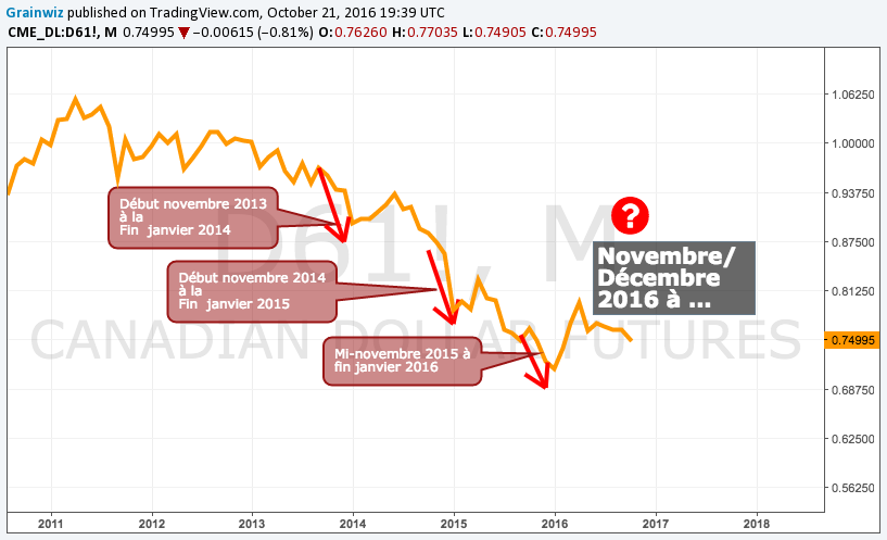 Il reste à voir maintenant si à l’image des trois dernières années, le dollar canadien encaissera un recul supplémentaire à partir de novembre vers un creux par la suite en début d’hiver. Ceci viendrait alors avantageusement profiter aux prix au Québec, certaines stratégies du côté de fermeture des bases à l’avance étant à évaluer en ce sens.