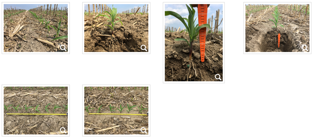 « Évaluation du champ le 20 juin (34 jours après le semis): La progression est impressionnante ; le maïs est déjà au stade V5-V6. »