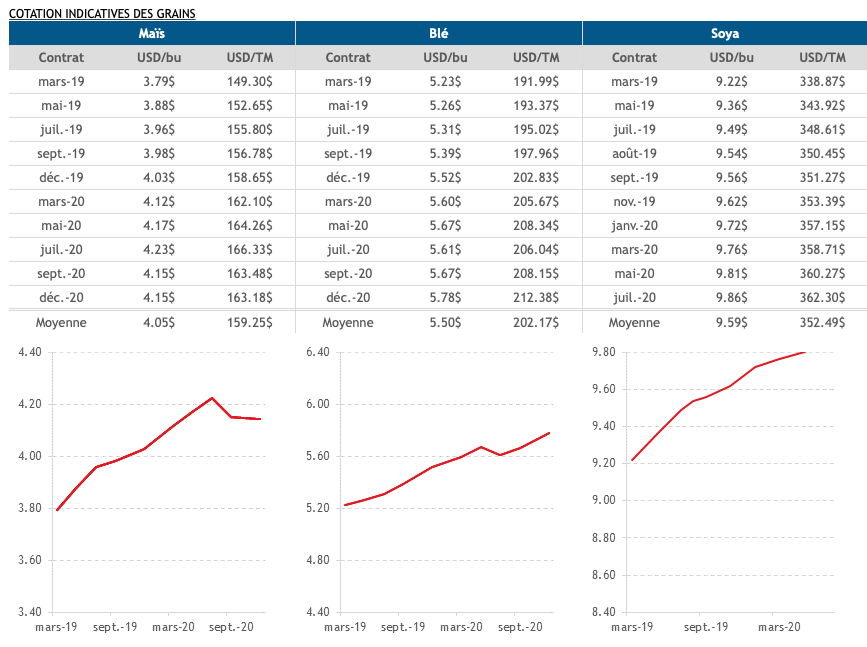 - Le prix des grains demeure tributaire des négociations entre la Chine et les Etats-Unis qui se sont terminées sans grande déclaration. La Chine a encore déclaré qu’elle souhaitait acheter beaucoup de produits agricoles américains.