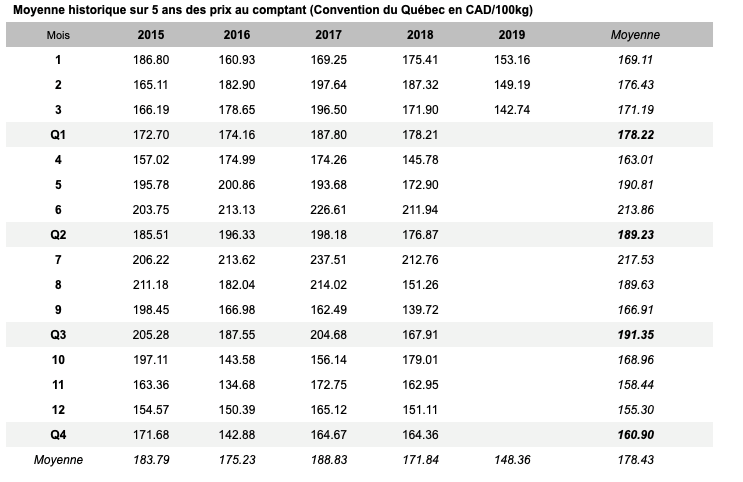 - Les échos voulant que le rythme d’abattage et la production demeurent élevés aux US, combiné à la forte escompte du prix au comptant, ont contribué hier à affaiblir le prix du contrat d’Avril 2019.