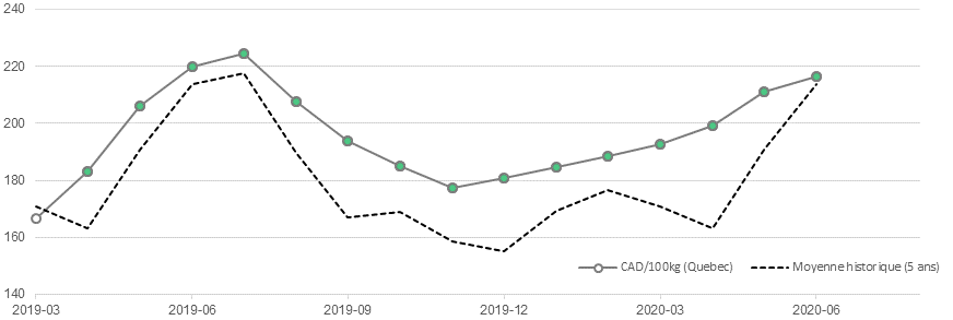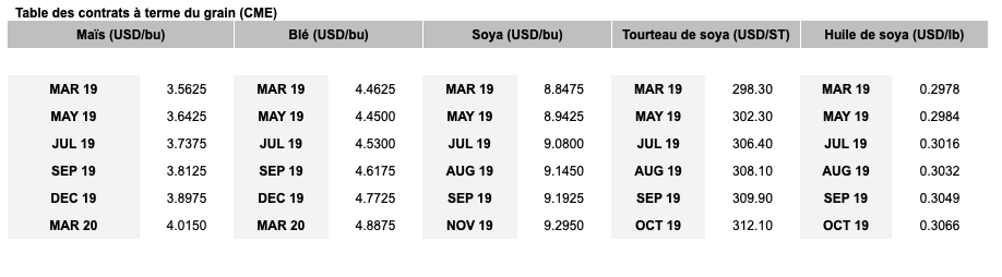 Voici les prix indicatifs (avant l’ouverture des marchés) pour le porc et les grains.