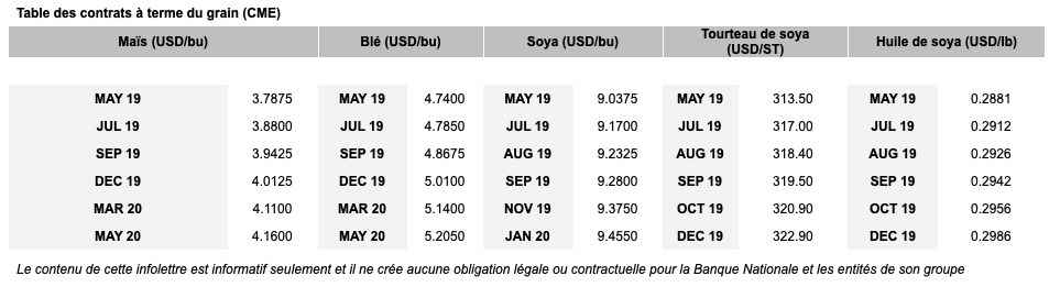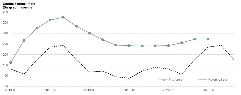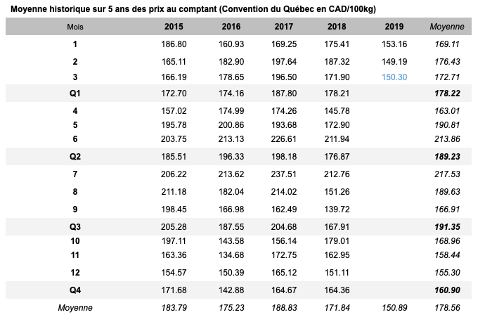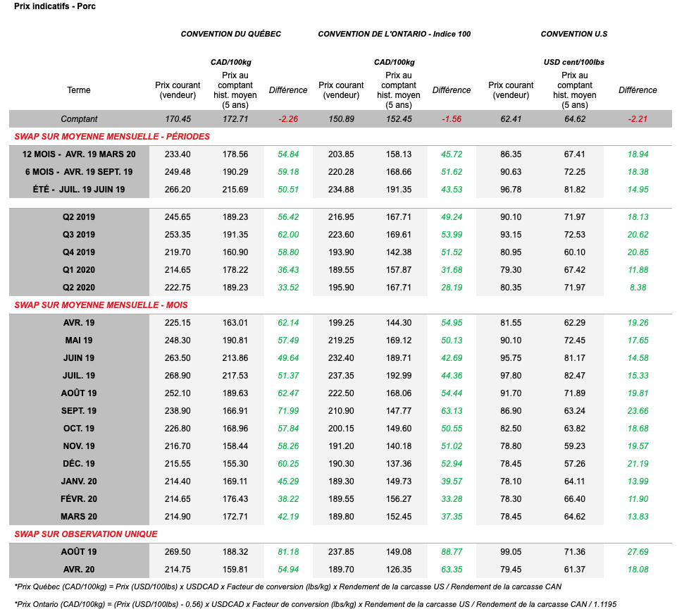 Voici les prix les plus récents sur le marché du porc et des grains: