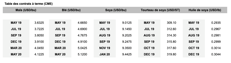 - Après avoir ouvert en baisse avec les chiffres de ventes à l’exportation décevants aux États-Unis, le marché a rapidement retrouvé son élan des derniers jours pour clôturer en hausse limite sur la majorité des échéances.
