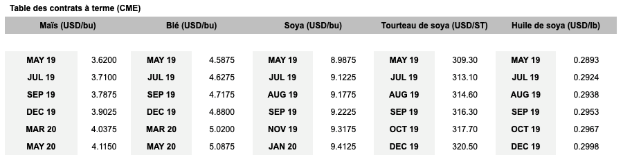 - Après avoir ouvert en baisse, le prix des contrats à Chicago s’est ressaisi en cours de séance pour terminer en hausse sur toutes les échéances.