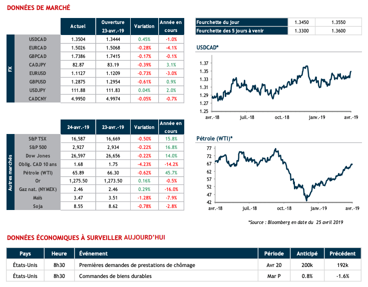 À son tour, la Banque du Canada (BdC) jette l’éponge. En effet, cette dernière a maintenu le taux directeur à 1.75% et a adopté un ton encore plus pessimiste que l’on anticipait. En plus de réviser à la baisse ses prévisions de croissance économique de 1.7% à 1.2% pour 2019, la Banque centrale a abaissé la fourchette du taux neutre estimé pour le situer entre 2.25% à 3.25% et a abandonné toute référence à une éventuelle hausse du taux directeur. Parmi les risques importants, la BdC cite le niveau d’endettement des ménages, le choc pétrolier, les tensions commerciales ainsi qu’un secteur immobilier au ralenti. Cependant, sur une note plus optimiste, une accélération de la croissance est anticipée lors de la deuxième moitié de l’année.