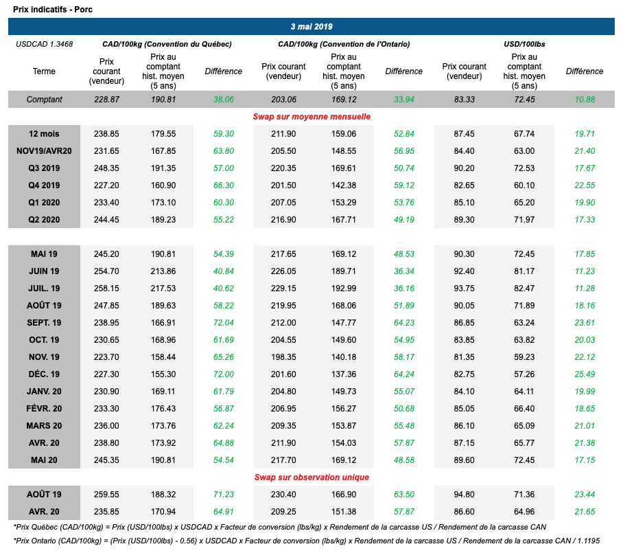 - La faiblesse du prix des coupes et des ventes à l’exportation encore décevantes (16,100 tonnes la semaine dernière) aux US ont contribué à la dégringolade des prix sur la majorité des maturités, mais plusieurs intervenants dans le marché sont d’avis qu’une entente entre la Chine et le US est maintenant à portée de main.