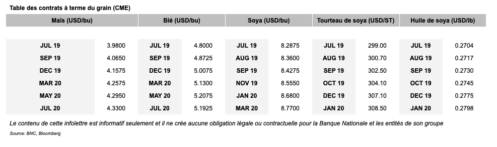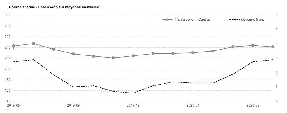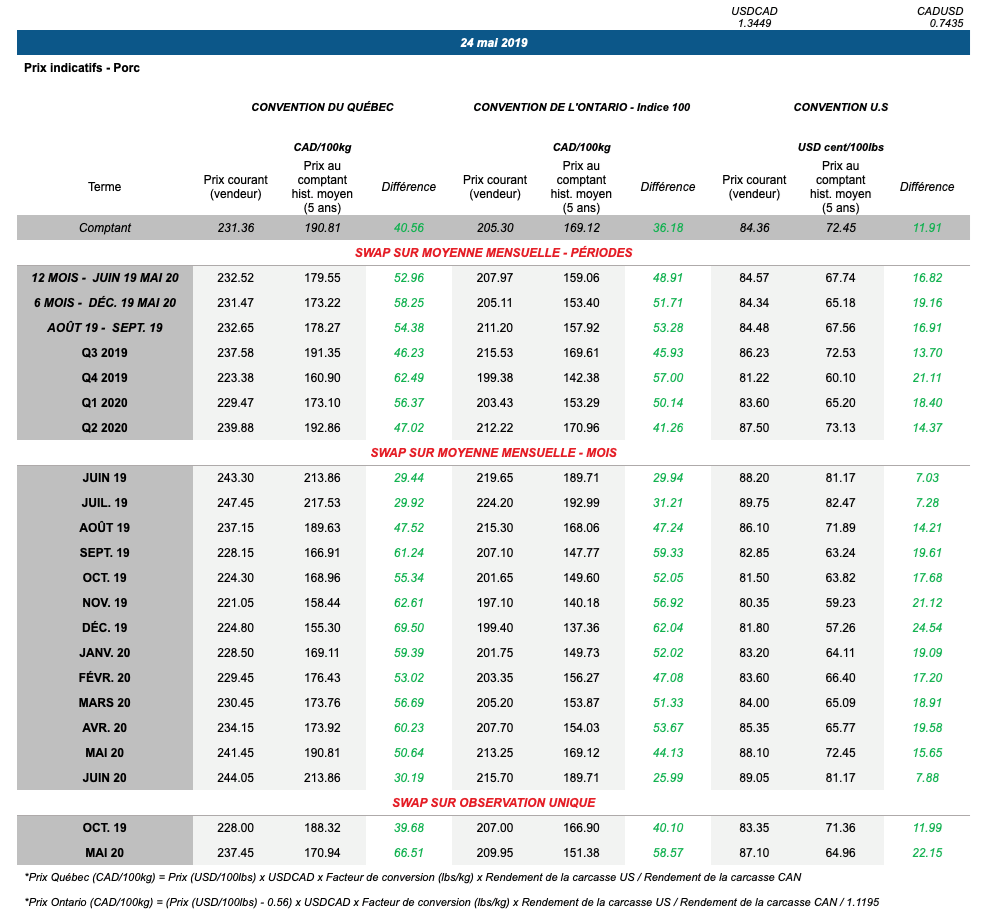 Voici les prix les plus récents sur le marché du porc et des grains: