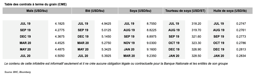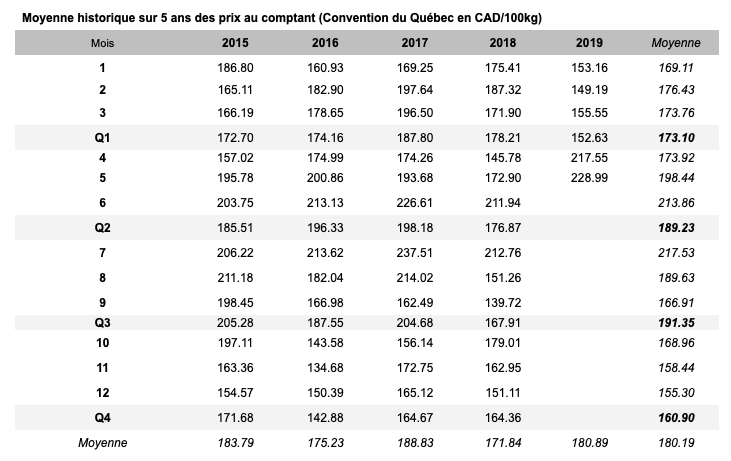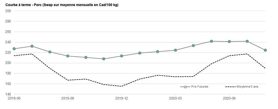 Voici les prix les plus récents sur le marché du porc et des grains: