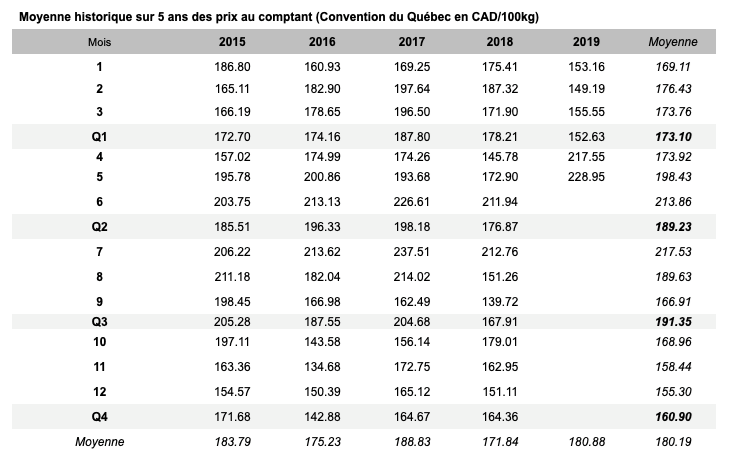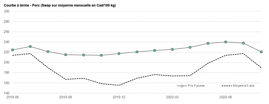 Voici les prix les plus récents sur le marché du porc et des grains: