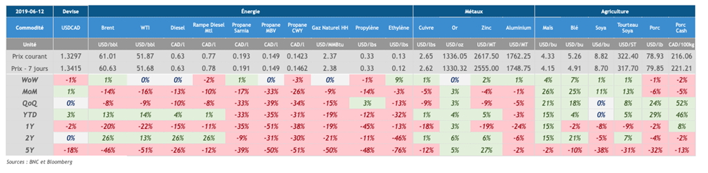 Voici les principaux points à retenir dans les marchés des commodités :