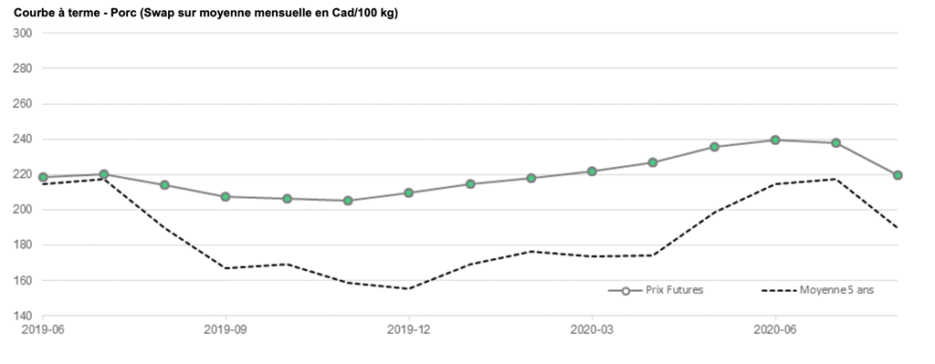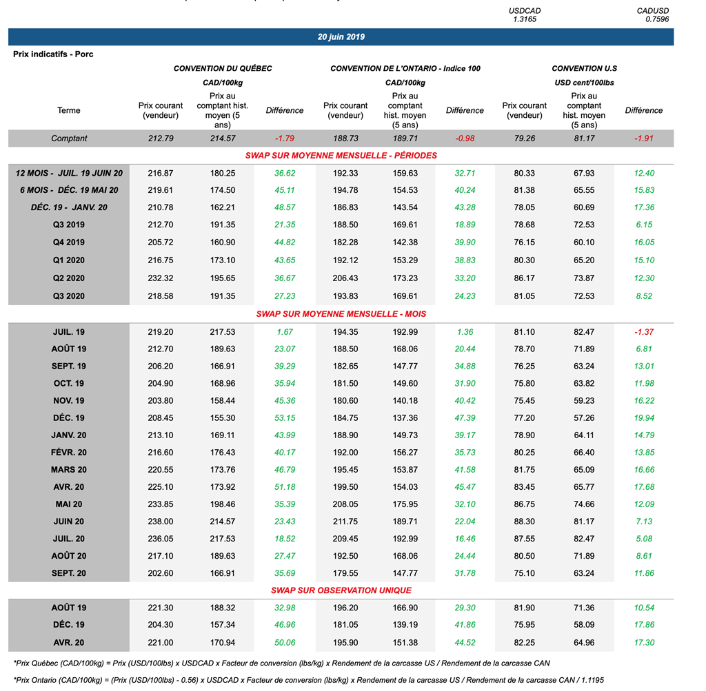 Voici les prix les plus récents sur le marché du porc et des grains: