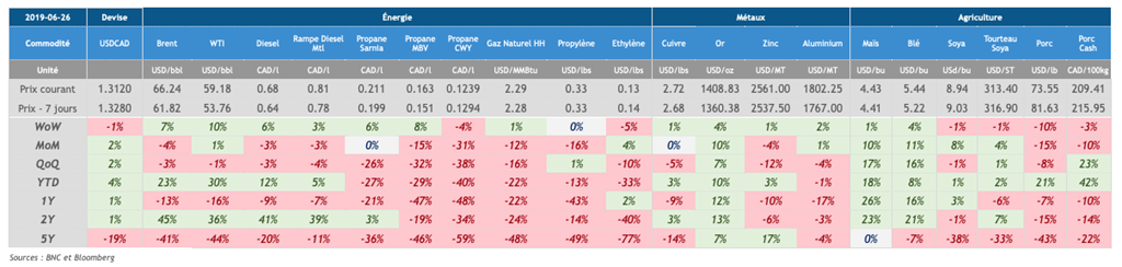 Voici les principaux points à retenir dans les marchés des commodités :