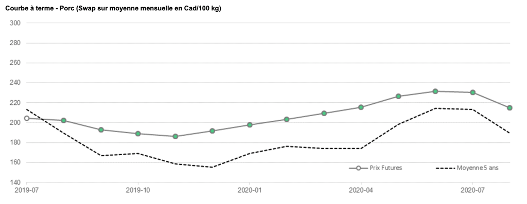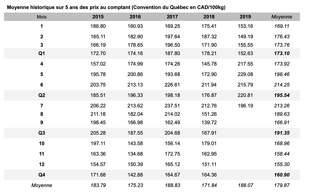 Voici les prix les plus récents sur le marché du porc et des grains: