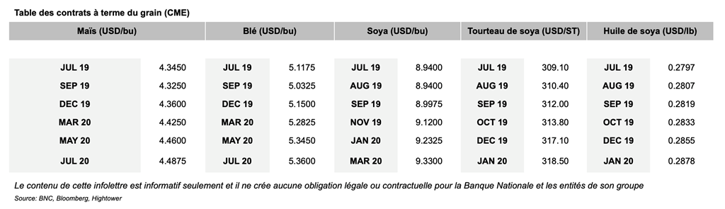 - Le dollar canadien reprend de la force par rapport au USD depuis hier alors que le ton convervateur adopté par M. Powell de la Fed des États-Unis l'a remporté sur celui-ci de M. Poloz de la Banque du Canada. Une coupe de taux d'intérêt aux US semble vouloir se concrétiser davantage pour l'annonce prévue le 31 juillet prochain.