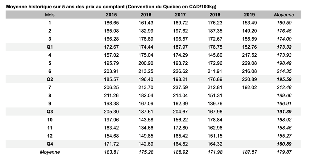 Voici les prix les plus récents sur le marché du porc et des grains:
