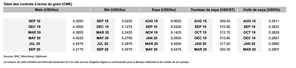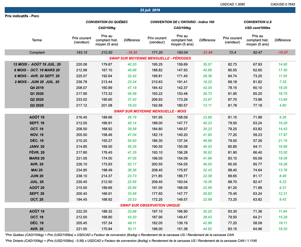 • Les prix des contrats de porc ont augmenté en raison de nouvelles encourageantes pour les producteurs américains, qui ont vu leurs ventes nettes d’exportations porcines augmenter de 6,800 tonnes métriques pour la semaine terminant le 11 juillet