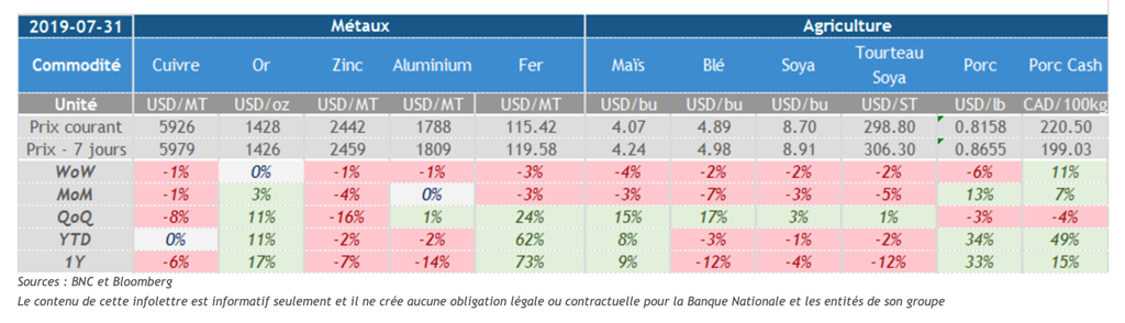 Voici les principaux points à retenir dans les marchés des commodités :