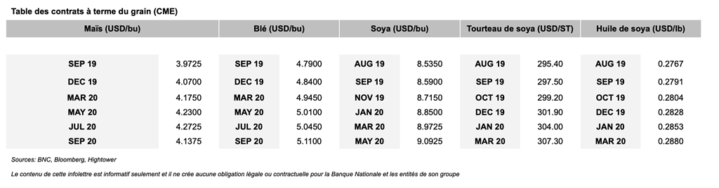 • Pour témoigner son mécontentement, M. Trump a publié dans un tweet l'ajout d'un tarif de 10% sur 300 milliards de bien additionnels. Ces nouveaux tarifs jettent un sérieux doute sur l’achat de produits agricoles chinois, alors que le gouvernement chinois qu’ils allaient répondre à cette sanction adéquatement.