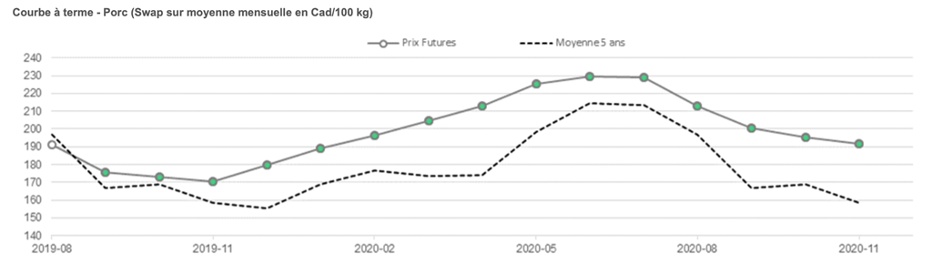 • La majorité des futures de porcs (CME) ont clôturé la journée à la baisse hier. Seuls les contrats de mai et octobre 2020 ont enregistré des gains hier.