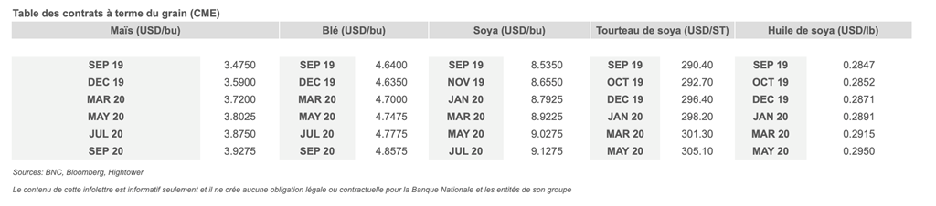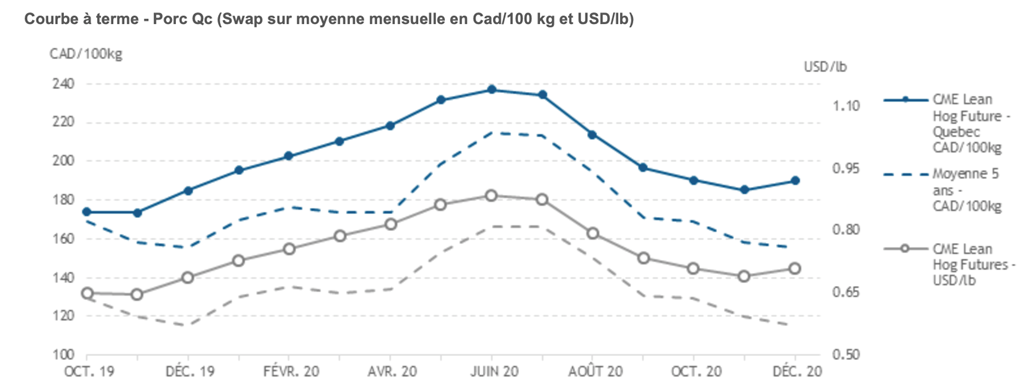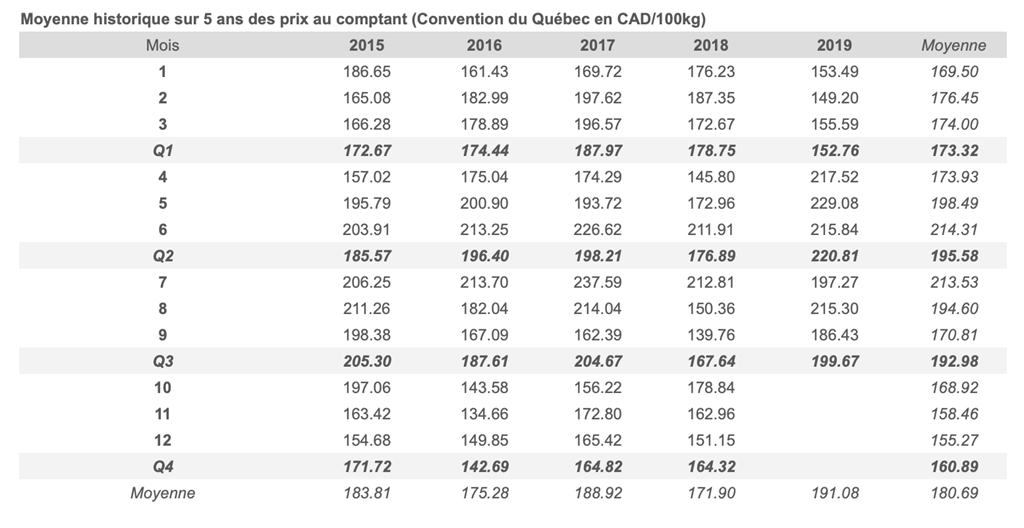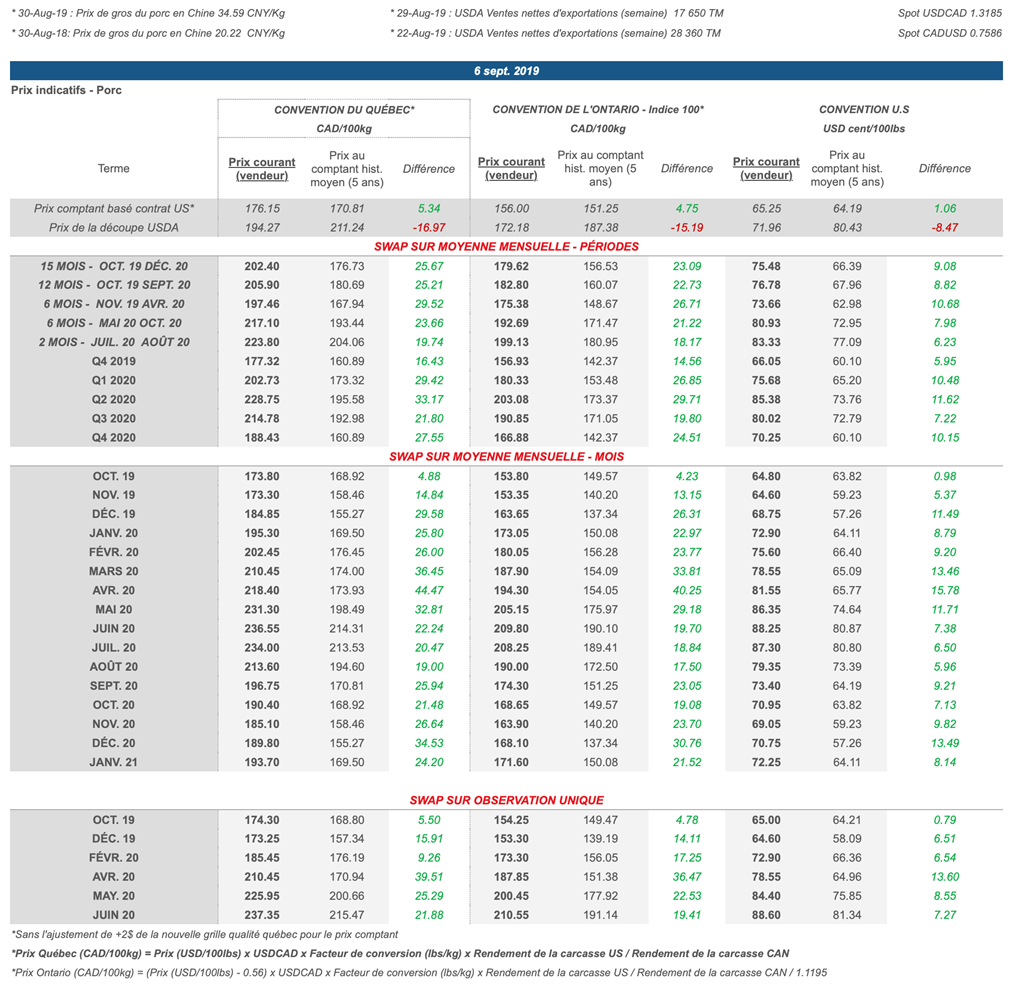 Voici les prix les plus récents sur le marché du porc et des grains:
