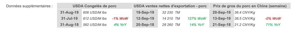 Le cheptel de porc chinois serait désormais réduit de moitié avec les ravages de la peste, se chiffrant maintenant à 200 millions de têtes. La production de porcs serait réduite de 25% de son côté, selon Rabobank.
