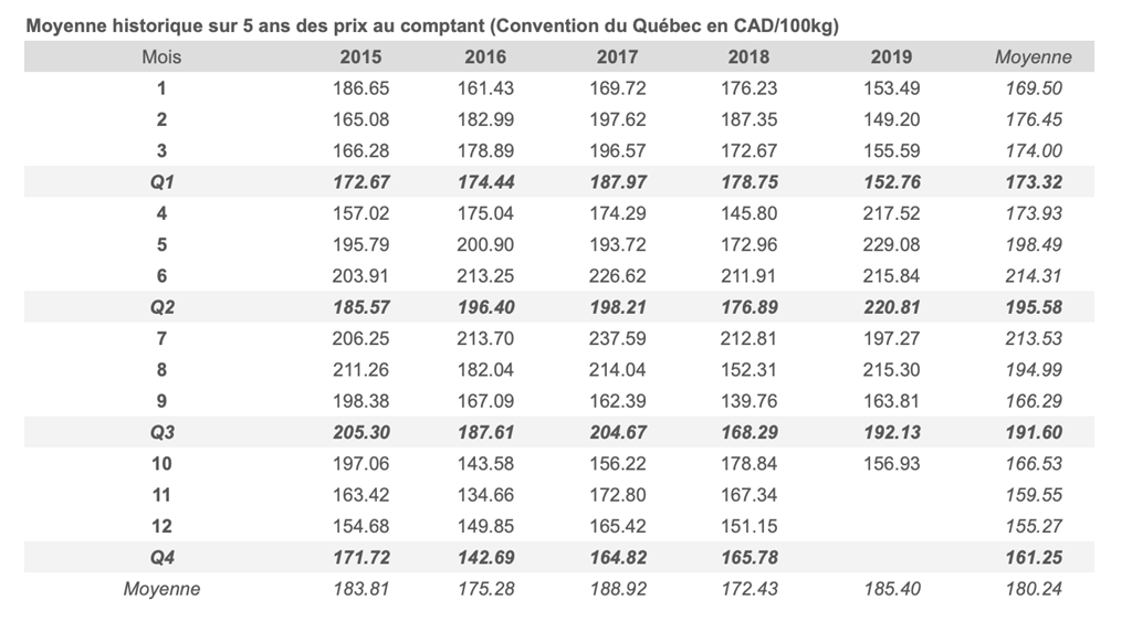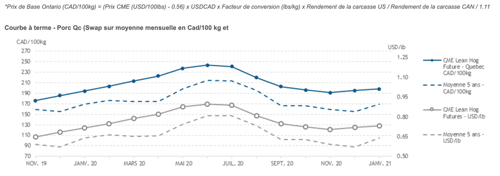 Voici les prix les plus récents sur le marché du porc et des grains: