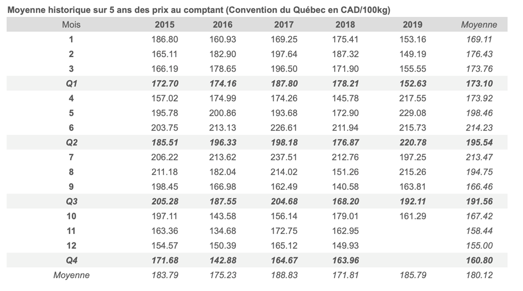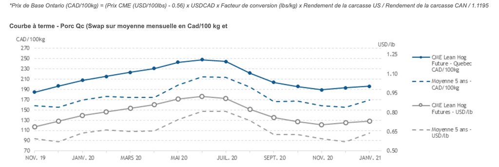 Voici les prix les plus récents sur le marché du porc et des grains: