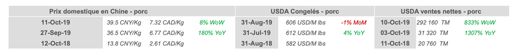 • Les ventes nettes à l’exportation de porc américain ont atteint un niveau record la semaine dernière, les acheteurs s’approvisionnant en prévision d’un déficit de protéines grandissant créé par la propagation de la maladie qui tue les porcs en Asie.