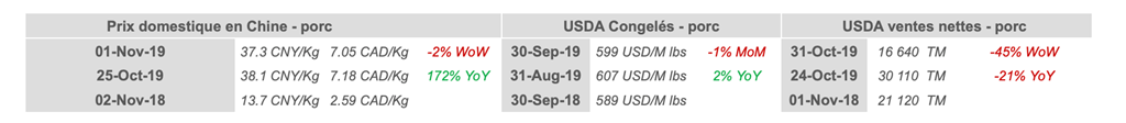 • Les prix du porc se sont rétablis plus tard au cours de la séance d'hier, après avoir débuté en baisse par les tensions à Hong Kong et à la réitération de Trump selon lesquelles les tarifs ne seraient pas tous levés.