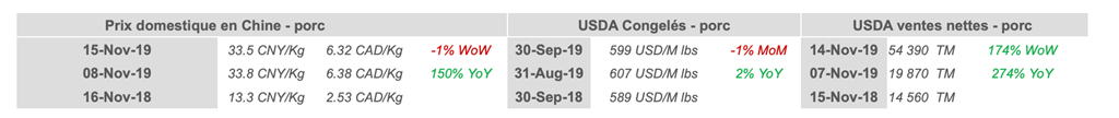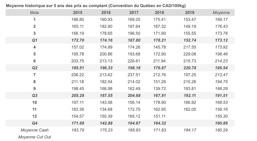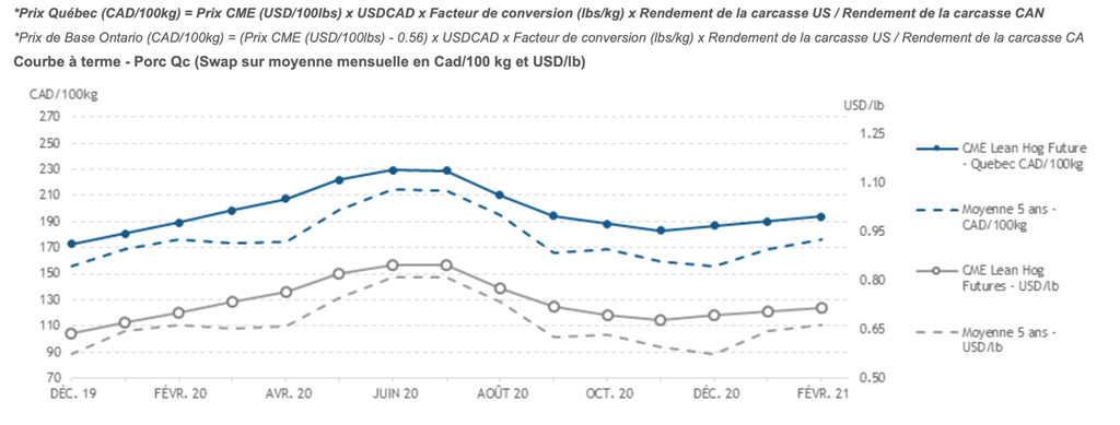 • Les prix du porcs ont été soutenus par les solides ventes nettes d'exportation. La Chine a été le principal acheteur avec des achats nets de 5 200 tonnes en 2019 et de 34 300 tonnes en 2020.
